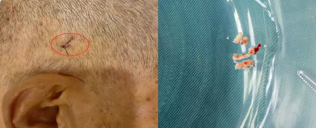 经过完善的术前准备,我院神经外科主任李峰教授带领团队制定了详细的手术计划,对该患者进行了神经导航机器人辅助下微创脑深部病变活检术,手术历时20分钟,切口直径仅5毫米,颅骨钻取3毫米微小骨孔,术后切口仅缝合一针,安返病房。次日复查颅脑CT未见出血,患者即下床自主活动。病理结果提示“弥漫性大B细胞淋巴瘤”,为患者后续精准治疗提供了保障。