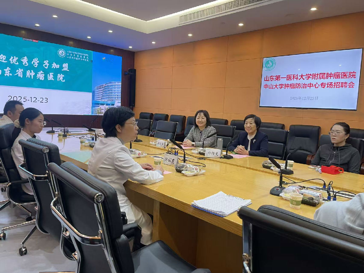 为加强我院人才队伍建设,多层次、多渠道吸引优秀人才,12月23日,我院2026年“院士领衔 广纳贤才”校园招聘行系列活动抵达中山大学肿瘤防治中心。我院党委副书记路友华率队举办专场招聘宣讲会。中山大学肿瘤防治中心党委副书记林娟霞参加活动。