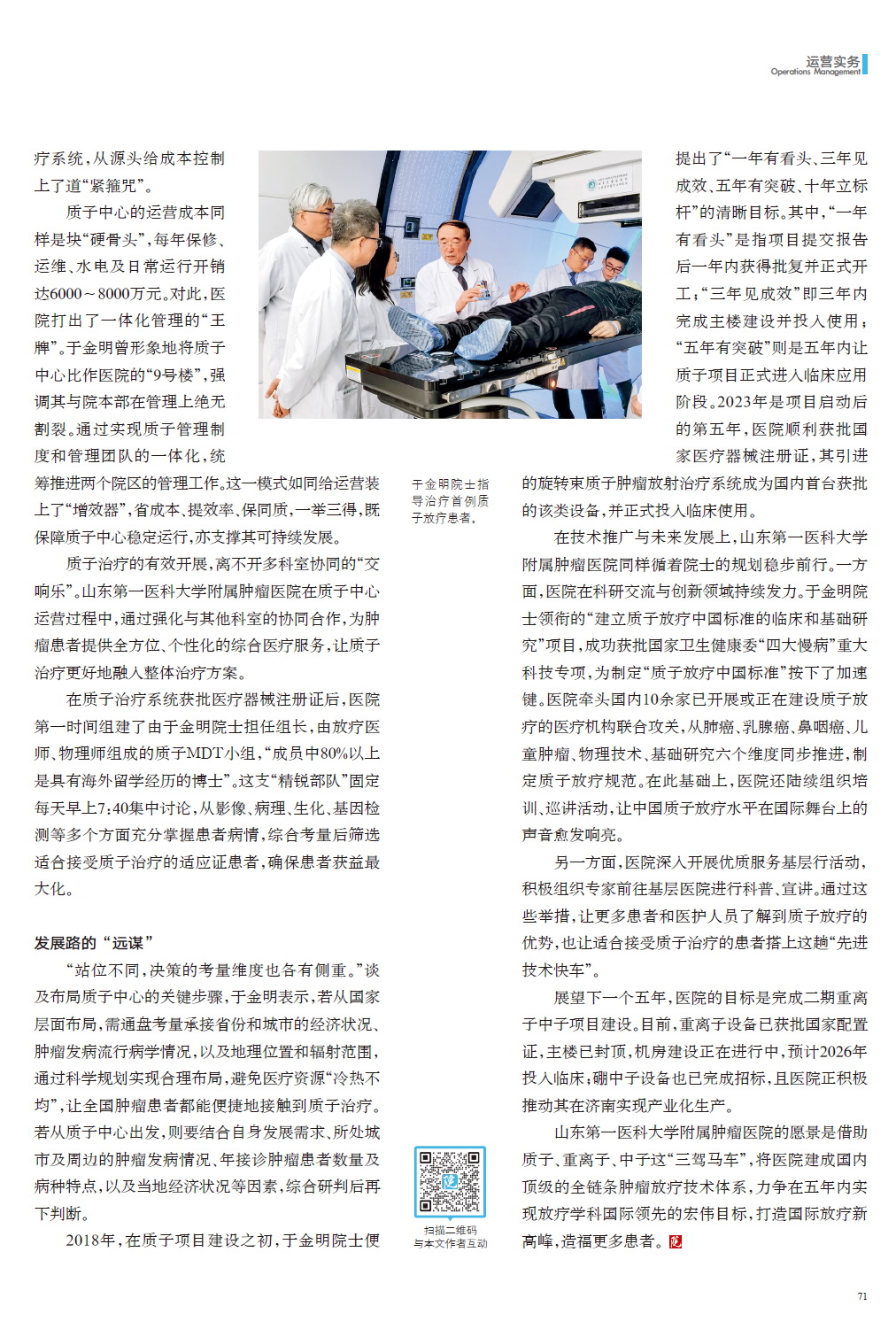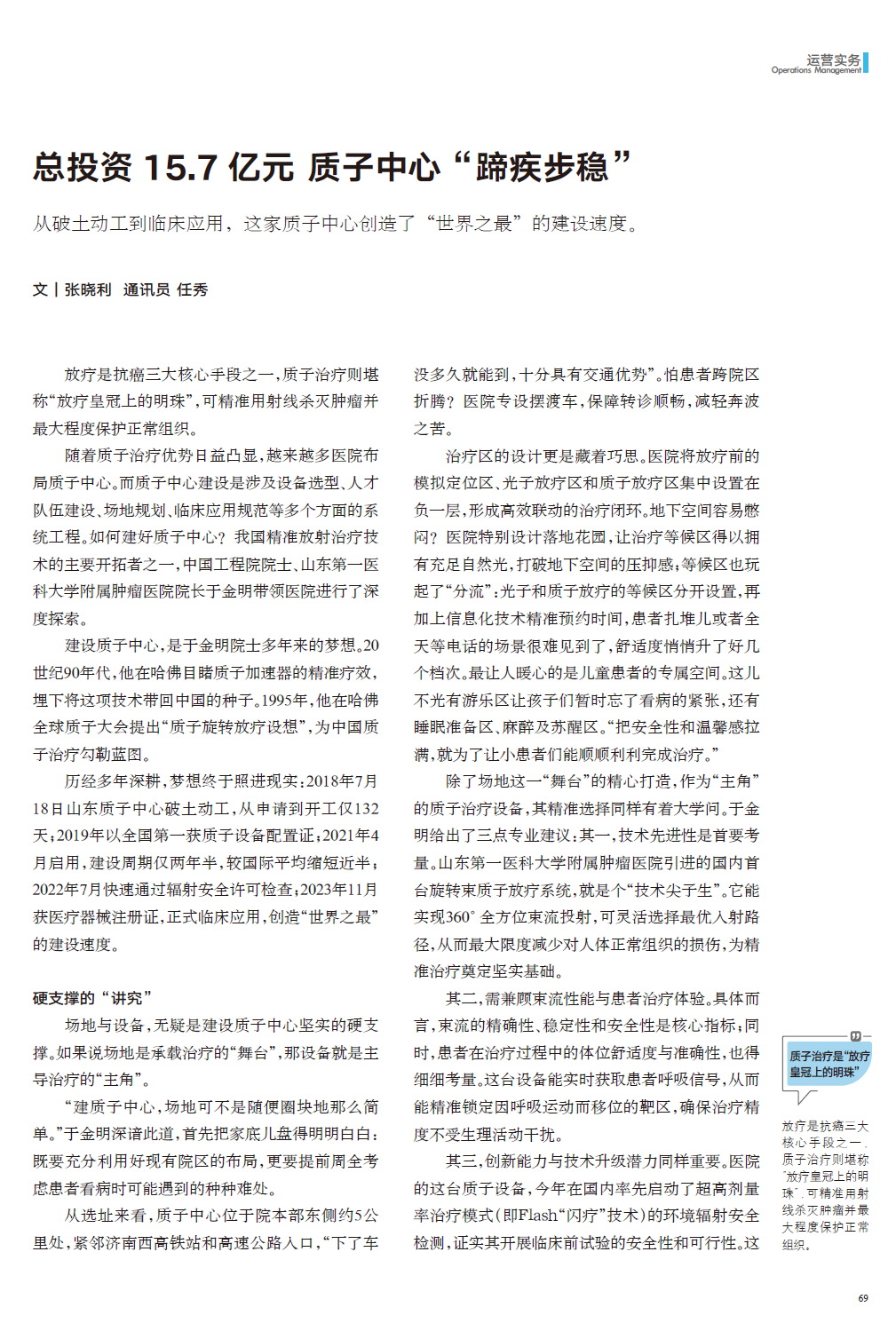 《中国医院院长》杂志报道山肿质子中心建设与运营情况 发布时间:2025-11-24 08:22:41本文来源: 阅读次数:0 分享: 从破土动工到临床应用质子中心建设速度创造了“世界之最”编辑:任秀责编:王沙沙审核:路友华