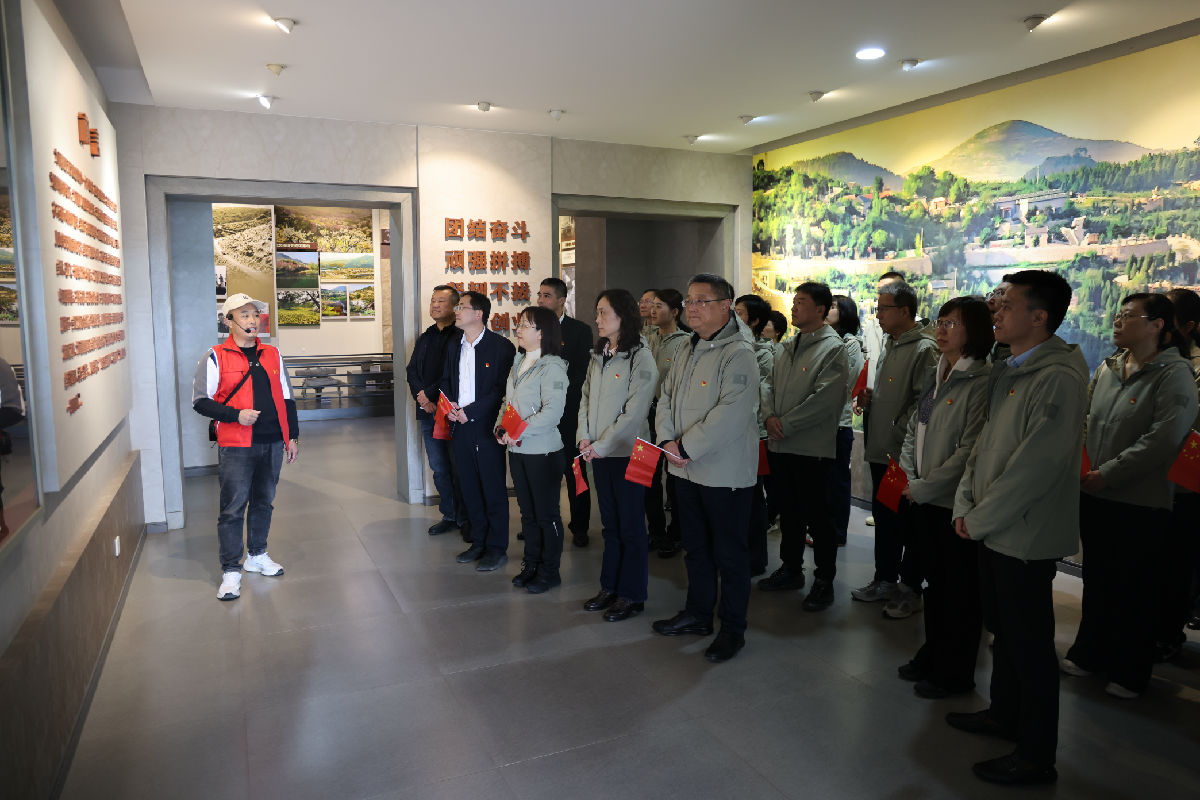 活动首站来到九间棚红色教育基地,在讲解员的引导下,党员们先后沿着蜿蜒的山路,实地参观了九间棚展览馆、九间棚旧址、龙顶山天池、盘山公路等,一幅幅珍贵的照片、一件件简陋的工具、一段段感人的故事,生动展现了九间棚人艰苦奋斗、开拓创新的历程。大家认真聆听讲解员的介绍,不时驻足观看,为九间棚人不畏艰难、勇于挑战的精神所震撼。