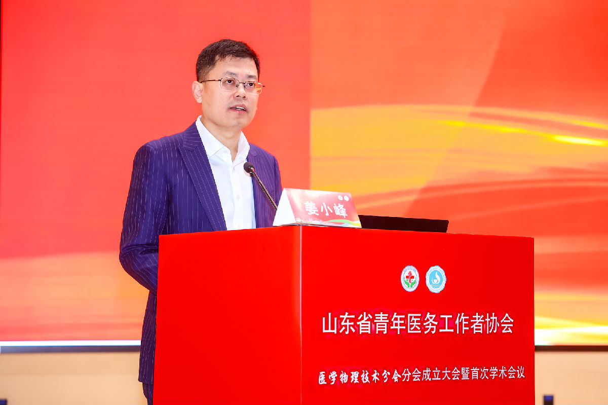 省青医协执行会长、秘书长姜小峰在讲话中对分会的成立表示热烈祝贺,表示协会将全力支持分会开展各项工作,希望分会能够成为凝聚专业人才、推动技术创新的重要平台,为山东省医学物理技术事业的发展贡献青春力量。