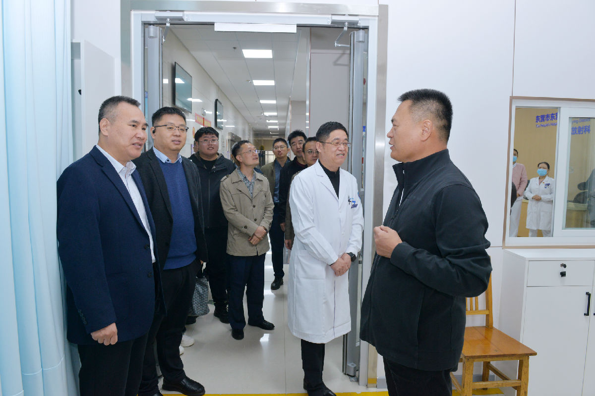 周曙光书记向刘玉国副院长一行介绍了东营区人民医院发展情况。随后我院专家团队深入东营区人民医院科室一线指导肿瘤诊疗工作,通过教学查房等形式就疑难病例以及肿瘤规范化诊疗进行深入讨论和交流。