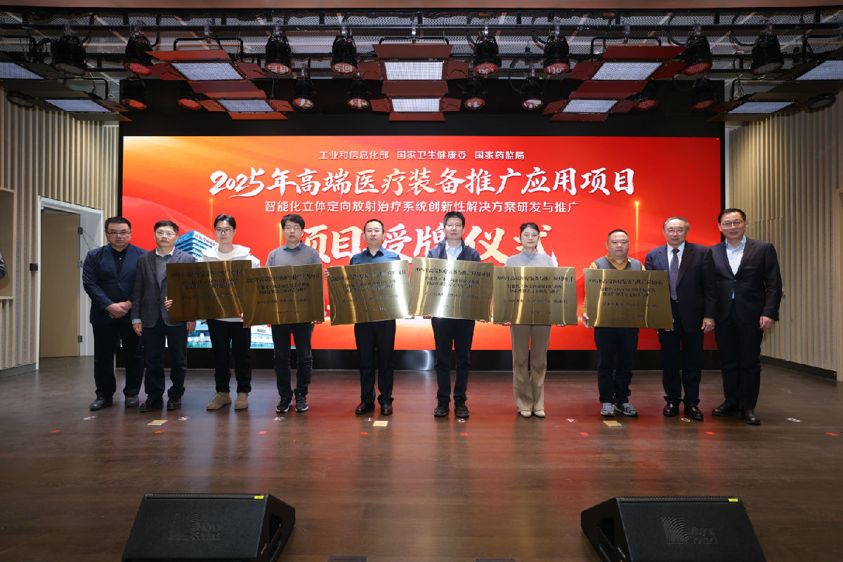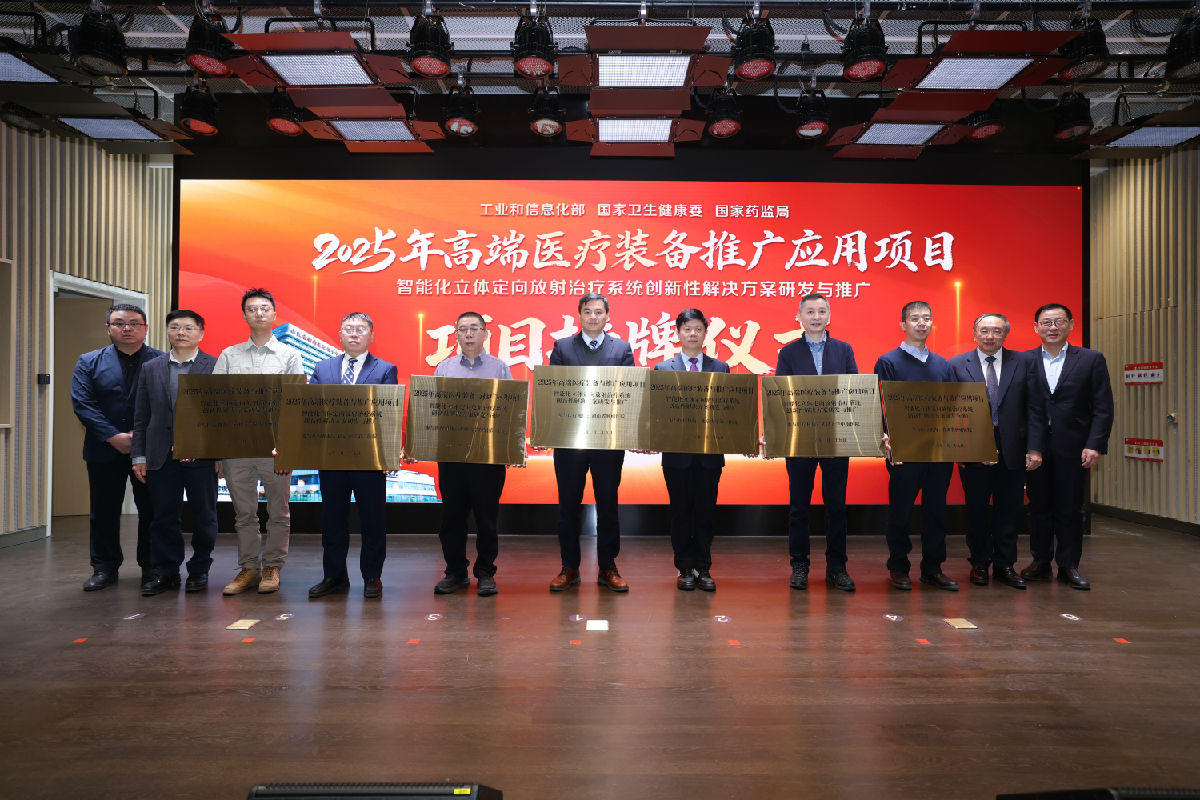 启动仪式上,于金明院长、齐贵新巡视员及薛敏董事长等领导共同启动“智能化立体定向放射治疗系统创新性解决方案研发与推广”项目,并为13家核心参与单位正式授牌。
