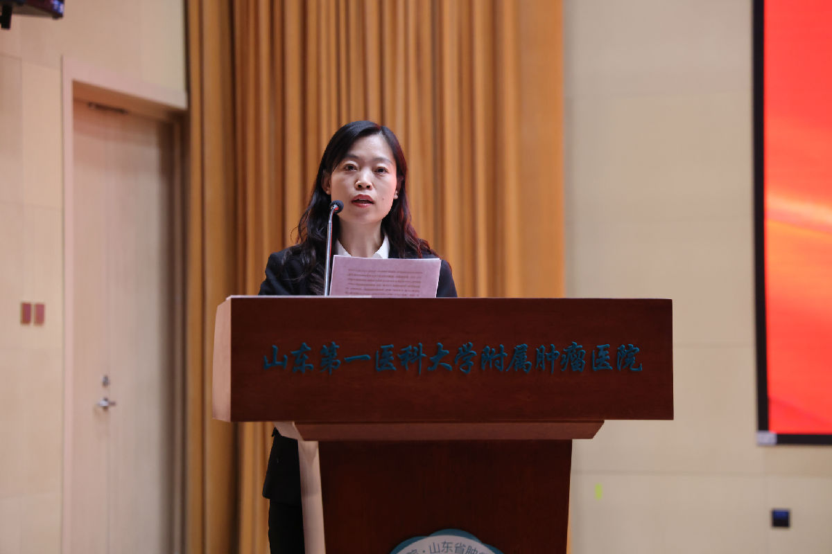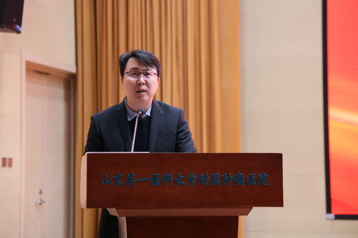 我院党委副书记路友华宣读了《山东第一医科大学附属肿瘤医院(山东省肿瘤防治研究院、山东省肿瘤医院)关于表彰二〇二五年度先进集体和先进个人的通报》,院领导依次为受表彰科室和个人颁奖。