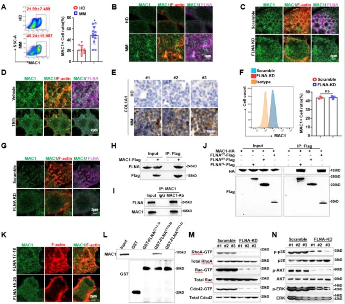 机制研究表明,FLNA主要通过两条途径发挥作用:一方面,FLNA增强MAC1与F-actin偶联,激活Rho、MAPK等信号通路,促进细胞骨架重塑并提升破骨细胞前体的力学特性。