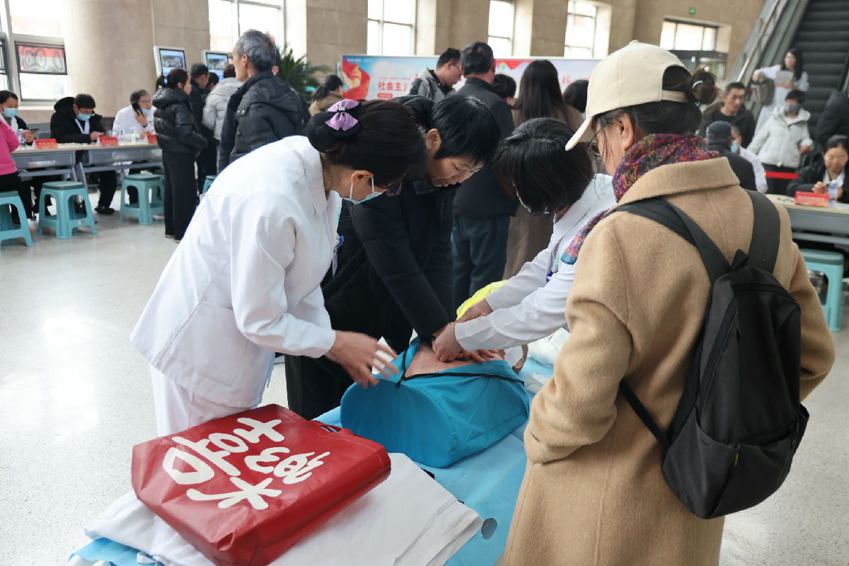 本次活动特别增设急救技能实操教学环节,现场教学心肺复苏及海姆立克急救法。医护人员通过理论讲解、模型演示、手把手指导的方式,用通俗语言拆解操作要点、按压规范与急救技巧,耐心带领群众实操练习,确保大家听得懂、学得会、用得上。活动现场还同步发放肿瘤防治、康复护理等科普资料,普及科学防癌知识,强化群众健康防护意识。