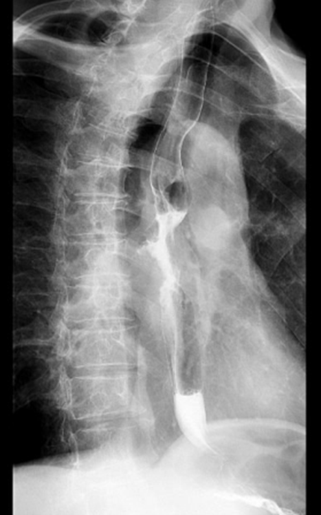 治疗前食管癌性狭窄与造影剂经瘘口外漏