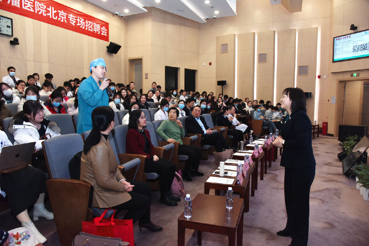 互动答疑环节,与会同学围绕招聘岗位、聘任职称、规培、博士后等问题积极提问,我院招聘团队逐一给予细致解答并与同学们深入交流。