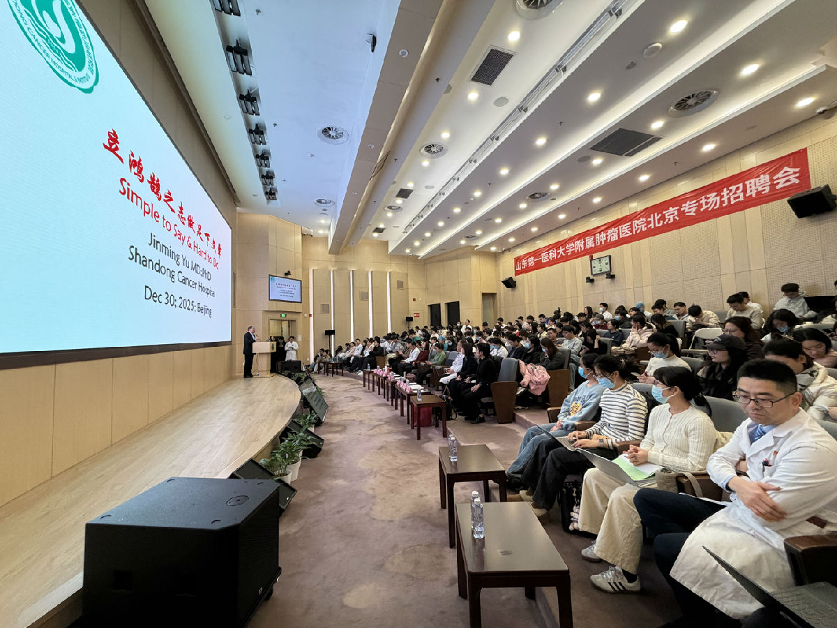 为深入实施人才强院战略,广泛吸引顶尖医学人才,12月30日,我院2026年“院士领衔 广纳贤才”校园招聘行系列活动第四站来到了北京协和医院,中国工程院院士、我院院长于金明,北京协和医院院长张抒扬,副院长杜斌,我院党委副书记路友华,山一大附属肿瘤医院和北京协和医院相关部门负责人参加活动,北京协和医院教育处处长李航主持活动,协和医院200余名博士研究生到场交流。